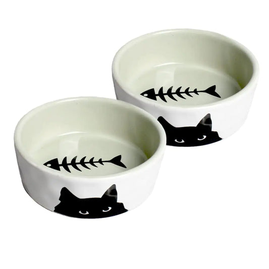 Cat Bowls - Premium Ceramic Cat Food and Water Dish 8oz Pet Bowls Set of 2
